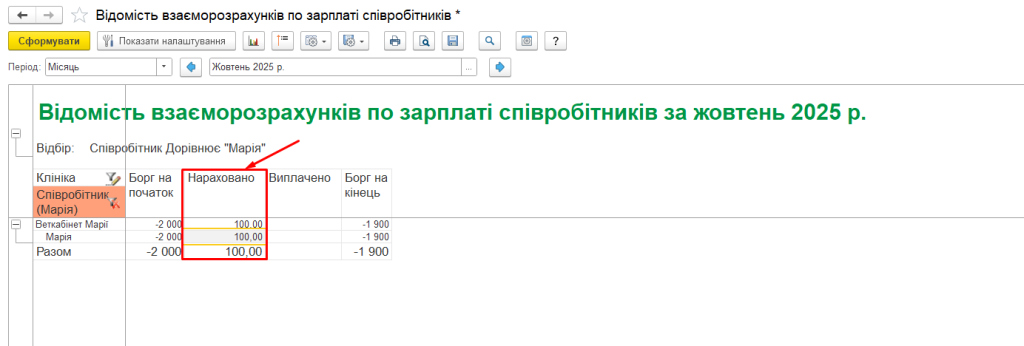 Борг перед співробітником за виробництво товарів можна буде відстежити у “Відомість взаєморозрахунків по зарплаті співробітників” (Мал. 10)