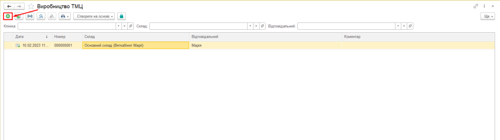 Мал. 2 Створюємо новий документ Виробництво ТМЦ